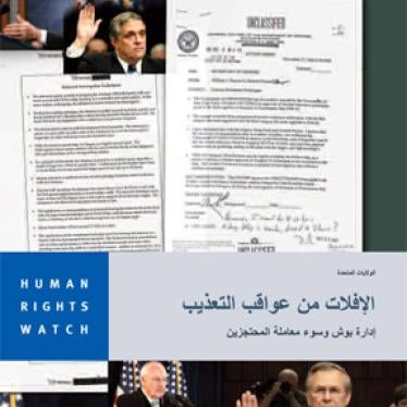 (واشنطن) - قالت هيومن رايتس ووتش في تقرير أصدرته اليوم إن هناك أدلة قوية على تورط إدارة بوش في التعذيب، بما يُلزم الرئيس باراك أوباما بالأمر بتحقيق جنائي في مزاعم الإساءة للمحتجزين، التي صرّح بها الرئيس السابق جورج دبليو بوش وغيره من كبار مسؤولي إدارته. وقالت هيومن رايتس ووتش إن إدارة أوباما أخفقت في الوفاء بالتزامات الولايات المتحدة المترتبة على اتفاقية مناهضة التعذيب، بأن تحقق في أعمال التعذيب وغيرها من أشكال المعاملة السيئة للمحتجزين.