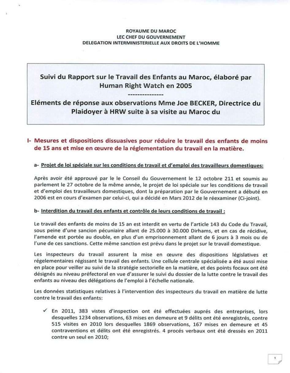يحتوي هذا التقريرعلى متابعة لبحوثنا السابقة، ويهدف إلى تقييم التقدم الذي تم إحرازه في مجال القضاء على عمل الأطفال في المنازل في المغرب منذ عام 2005، والتحديات الباقية التي لم يتم تجاوزها بعد. تظهر بحوثنا في عام 2012 – وتشمل مقابلات مع 20 عاملة منازل سابقة من الأطفال في الدار البيضاء والمناطق الريفية المرسلة للعاملات وكذلك مع منظمات مجتمع مدني ومسؤولين حكوميين وأطراف أخرى معنية – أن عدد الأطفال المشتغلين كعاملات منازل تراجع منذ عام 2005، وأن عدداً أقل من الفتيات يعملن في سن مبكرة للغاية. لقد أدت حملات التوعية الجماهيرية التي نظمتها الحكومة ومنظمات المجتمع المدني وهيئات الأمم المتحدة – مصحوبة بتكثيف الاهتمام الإعلامي – إلى زيادة وعي الجمهور بمشكلة عمل الأطفال في المنازل والمخاطر التي تتعرض لها الفتيات. وقد قال مسؤول بمنظمة العمل الدولية: "عندما ذهبت للمغرب لأول مرة قبل عشر سنوات لم يكن هناك من يرغب في الحديث عن هذا الموضوع. لكن الآن لم تعد مشكلة عمل الأطفال في المنازل موضوعاً محرماً لا يصح الحديث عنه". ظهر من جهود الحكومة لزيادة الإلحاق بالمدارس نجاحاً لافتاً وساعدت تلك الجهود على تقليل عدد الأطفال المنخرطين في العمل.