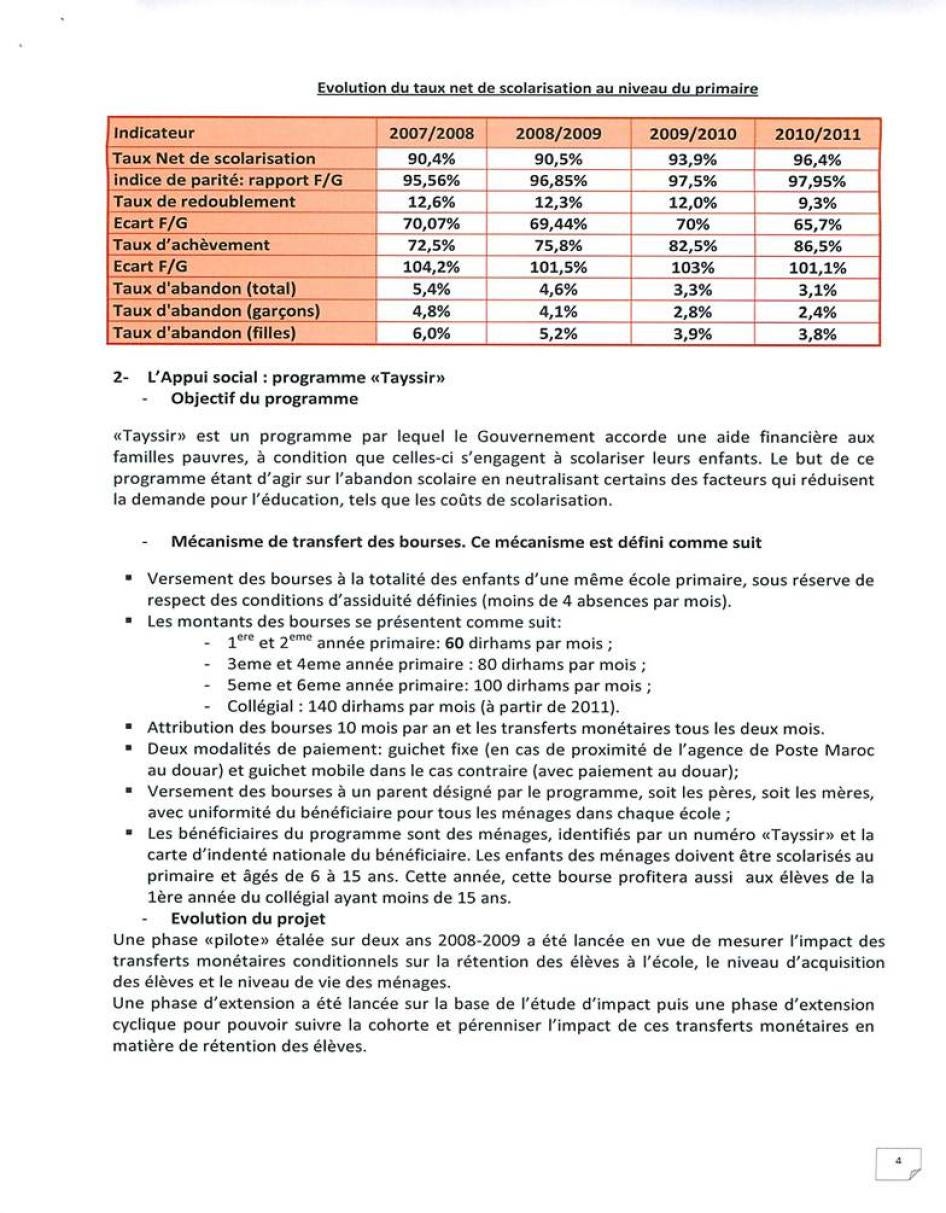 [126] المندوبية الوزارية، 15 يونيو/حزيران 2012. عدد الملتحقين النهائي هو عدد الأطفال الذين بلغوا رسمياً سن الالتحاق بالتعليم الابتدائي والتحقوا به، كنسبة من إجمالي الأطفال في سن التعليم الابتدائي من السكان. معدلات الالتحاق بالمدارس لا تُقاس بنسب حضور الأطفال الفعلية للدراسة.