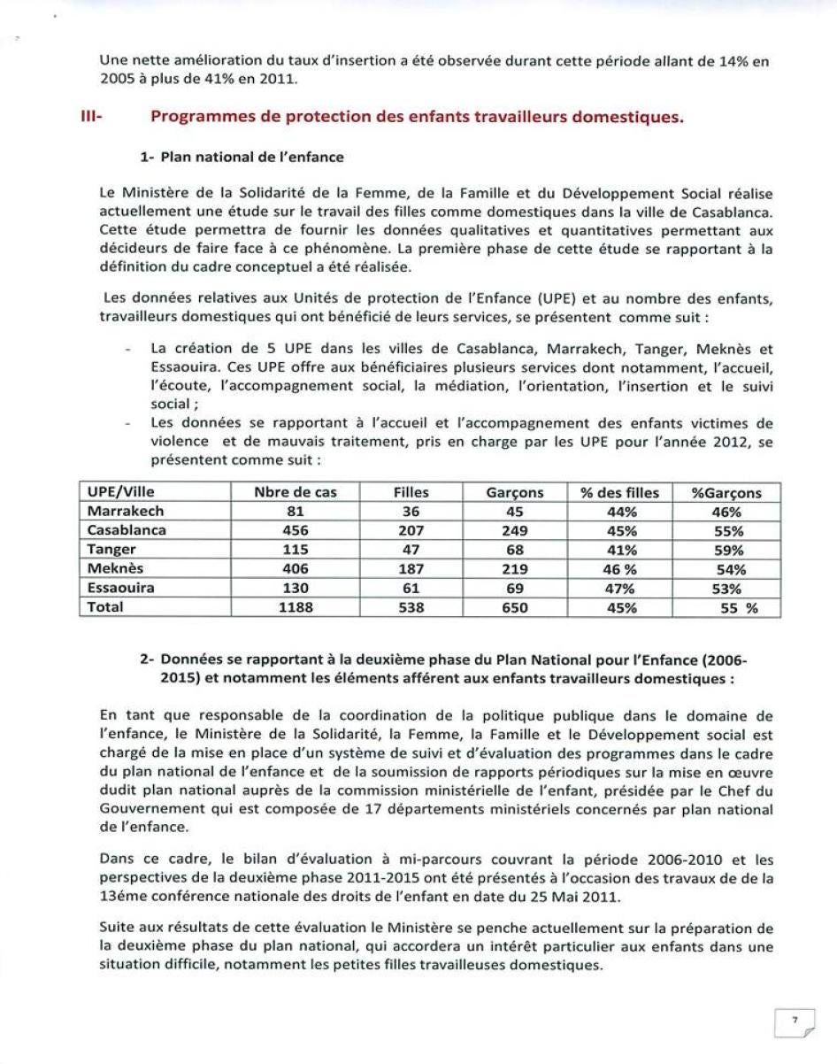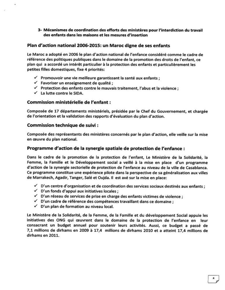 نتيجة لذلك ما زال عمل الأطفال في البيوت يُعد مشكلة كبيرة في المغرب. يجب بذل جهود إضافية لتطبيق الحظر القانوني الساري في المغرب على توظيف الأطفال تحت 15 عاماً في العمل، ولحماية الفتيات الأكبر ممن أصبح سنهن مناسبا، ولمنع الانتهاكات وظروف استغلال الفتيات المغربيات الصغيرات في العمل في البيوت.