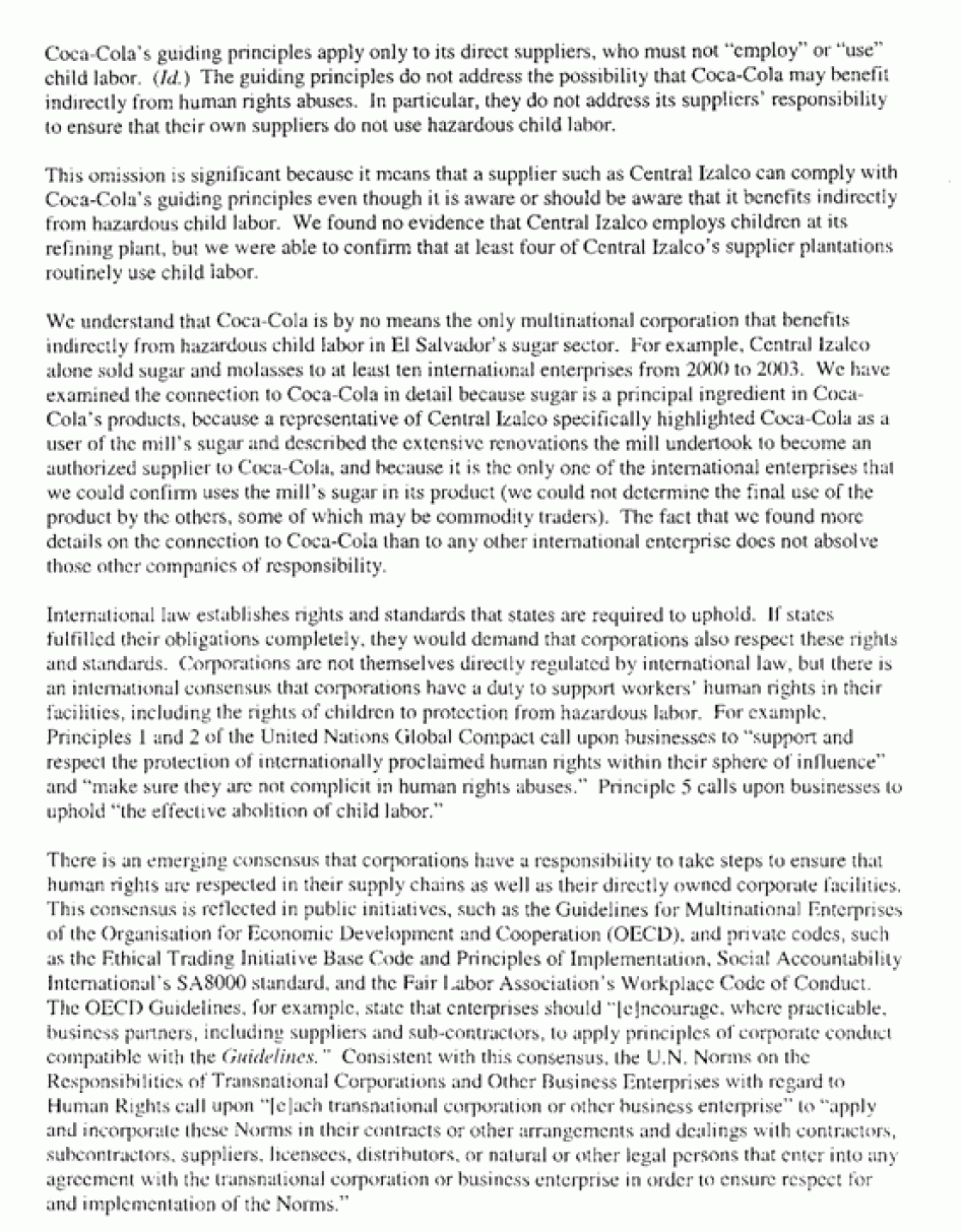 [241]Principios Rectores para Proveedores de The Coca-Cola Company (2002), p. 1.  Estos principios rectores se reproducen en el Apéndice A.