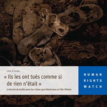 « C’est précisément en raison de l’absence d’efforts fournis au niveau national pour poursuivre les auteurs des crimes perpétrés par les forces alliées au Président Ouattara que le procureur de la CPI devrait procéder sans délai à l’ouverture d’enquêtes sur leurs crimes graves et qu’il devrait encourager le gouvernement ivoirien à engager des poursuites nationales à l’encontre de tous les responsables de crimes graves, quel que soit le camp auquel ils appartiennent », a conclu Elise Keppler. « La justice pour les crimes commis par les deux camps s’avère cruciale pour rompre les cycles de violence qui ont frappé la Côte d’Ivoire au cours de la dernière décennie. »