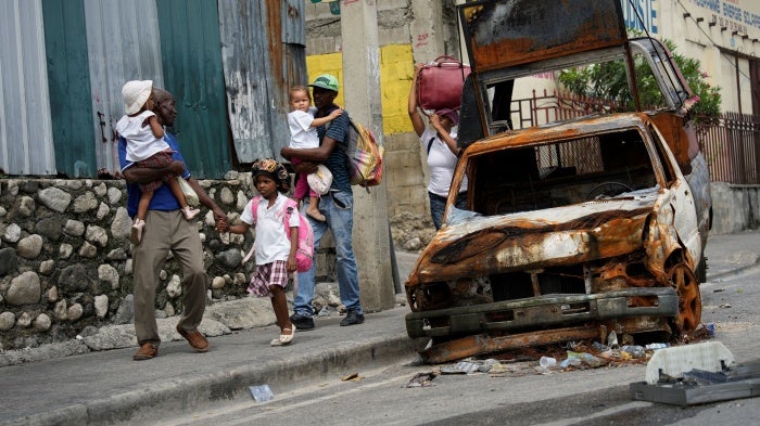 Selon les agences onusiennes, les groupes criminels contrôlent environ 85 % de Port-au-Prince, la capitale d’Haïti, et sa zone métropolitaine. Ils se sont rapidement étendus dans des zones auparavant sûres de Port-au-Prince, ainsi que dans des régions clés telles que les départements de l’Ouest et de l’Artibonite, le centre agricole d’Haïti. Beaucoup de ces groupes criminels auraient des liens avec des officiers de police et des élites politiques et économiques.