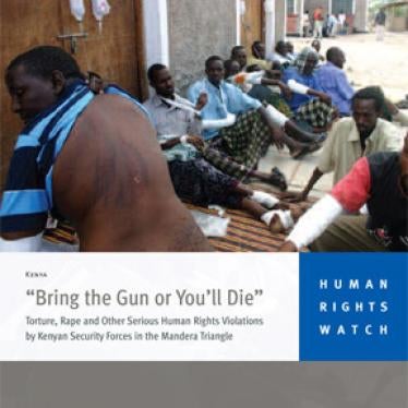 The 51-page report, "‘Bring the Gun or You'll Die': Torture, Rape, and Other Serious Human Rights Violations by Kenyan Security Forces in the Mandera Triangle," documents rampant abuses during the operation and provides detailed accounts of the events in four of the 10 communities that were targeted. Across all 10 communities the evidence collected by Human Rights Watch indicates that security forces tortured scores of men, wounded at least 1,200 people, including one man who died from his injuries, and raped at least a dozen women over the course of the three-day operation. Human Rights Watch said this is part of a broader pattern of similar abuses by security forces.