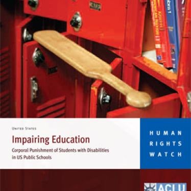 Students of color and students with disabilities are disproportionately subjected to corporal punishment, hampering their access to a supportive learning environment. According to the Department of Education, while African Americans make up 17.1 percent of public school students nationwide, they accounted for 35.6 percent of those who were paddled during the 2006-2007 school year.[8] In A Violent Education and Impairing Education, two joint reports published by the ACLU and HRW detailing the effects of corporal punishment in public schools, interviewees noted the disproportionate application of corporal punishment: