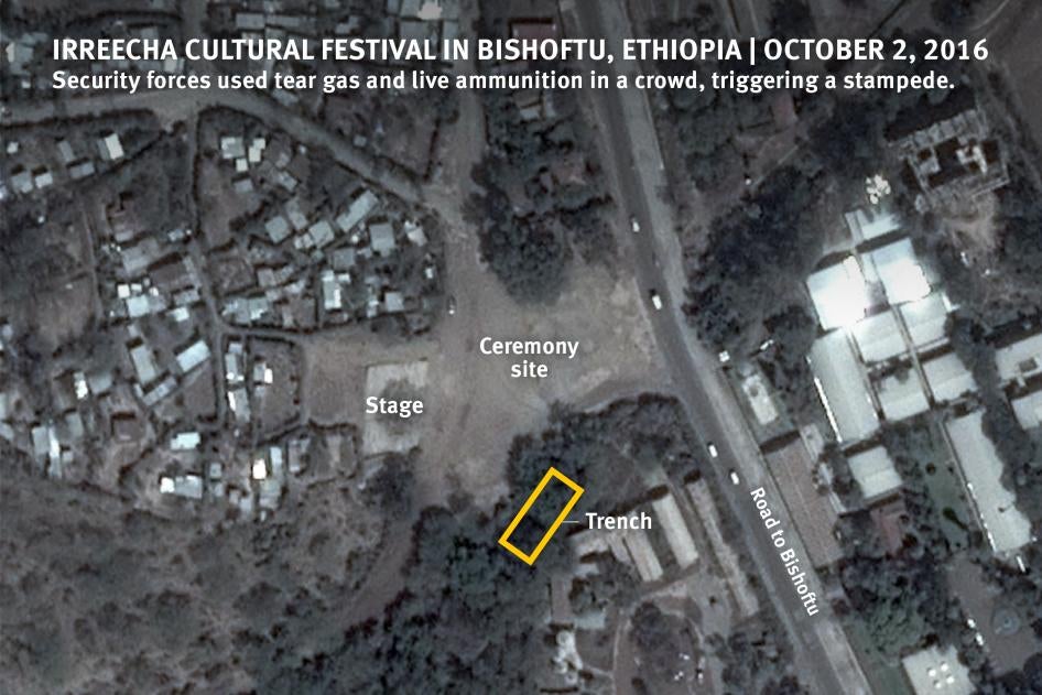 Tensions were already high ahead of the 2016 festival – held every year at Bishoftu, 40 kilometers southeast of Addis Ababa – following a year of protests against the government and security force aggression that left more than 1,000 people dead and tens of thousands in detention. The government attempted to play a more central role in the management of the festival than in previous years, including imposing stringent security measures and flying military helicopters low overhead. A former traditional leader with close ties to the government appeared onstage.