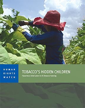 The 138-page report documents conditions for children working on tobacco farms in four states where 90 percent of US tobacco is grown: North Carolina, Kentucky, Tennessee, and Virginia. Children reported vomiting, nausea, headaches, and dizziness while working on tobacco farms, all symptoms consistent with acute nicotine poisoning.
