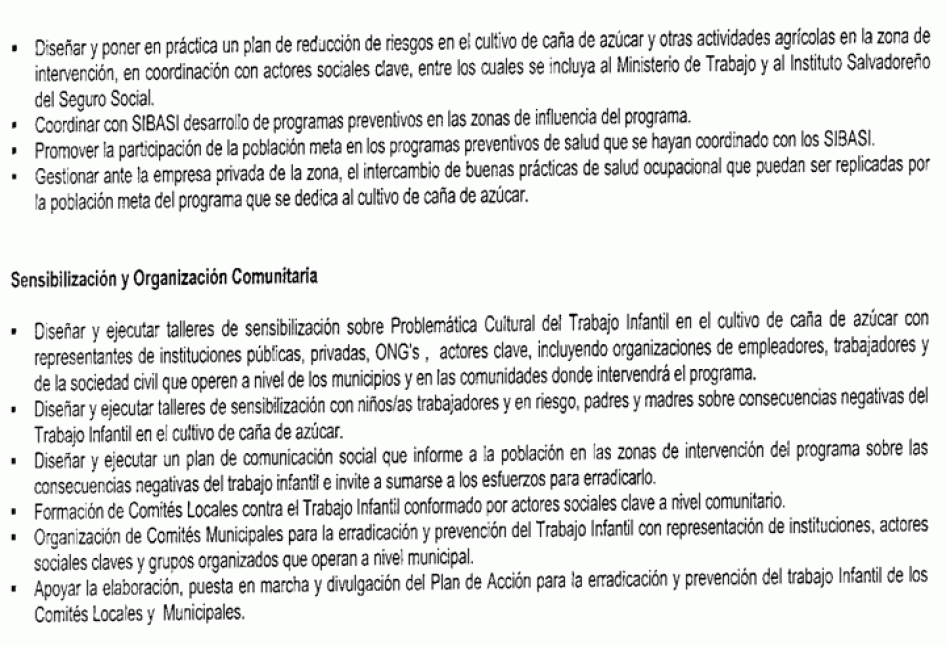 - In line with article 8 of the Worst Forms of Child Labour Convention, donor countries should assist El Salvador in implementing the convention, particularly through support for universal education.