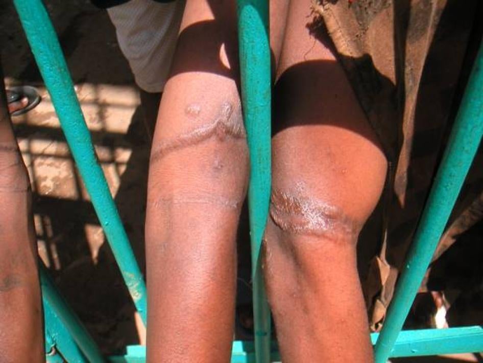 Prisoners in the Maison Centrale in Conakry bear scars that they say are a result of being bound with cords and hung in the air as part of a torture technique used during police interrogation. © 2006 Human Rights Watch
