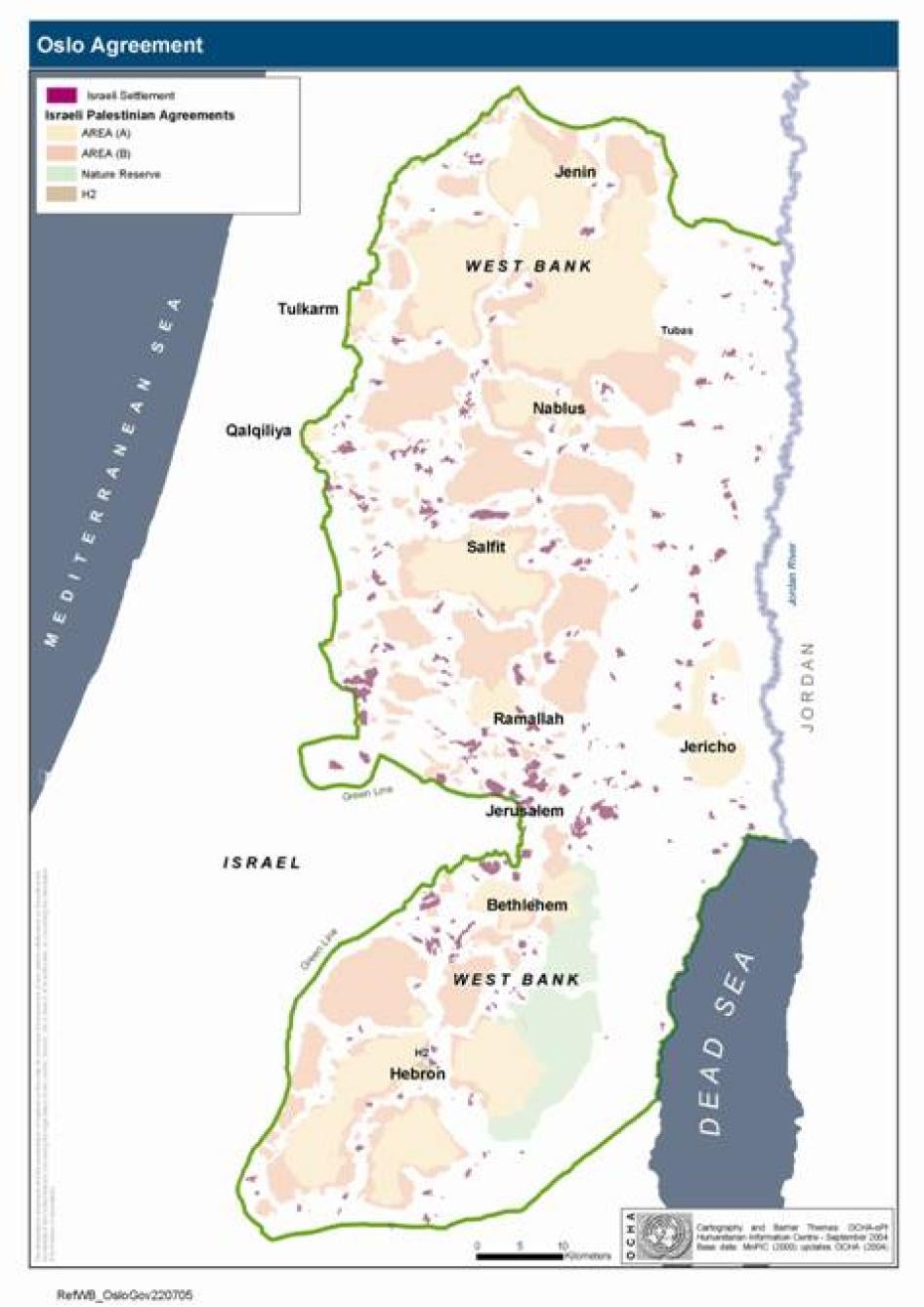Geographic areas of the West Bank under the Oslo Agreement © 2005 OCHA-OPT