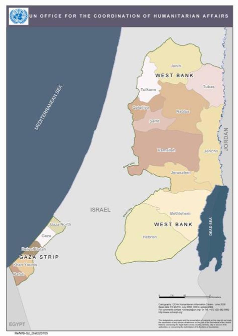 West Bank and Gaza districts © 2005 OCHA-OPT