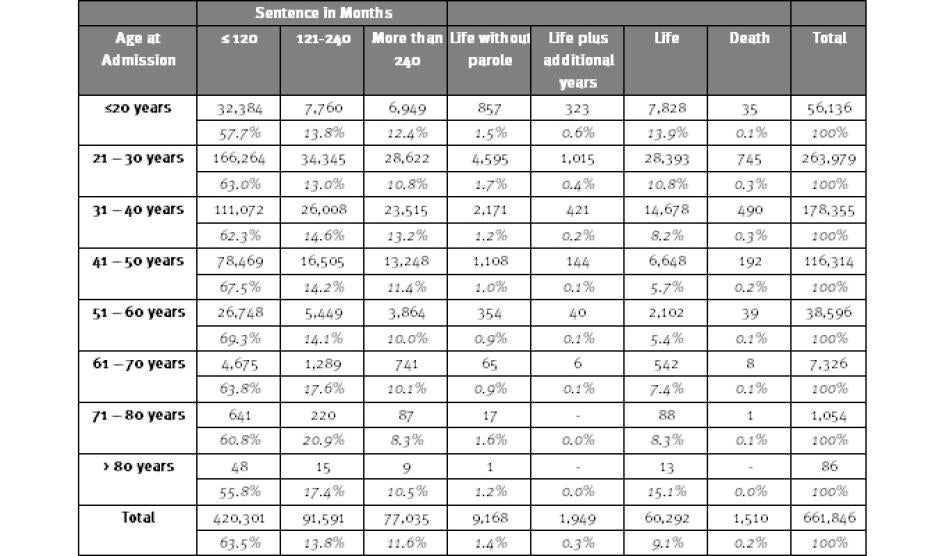 Table 1: Sentenced State and Federal Prisoners by Age, 1995- 2010 [9]