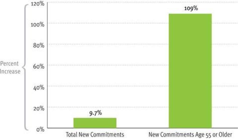 Perhaps the most dramatic indication of the surging number of older prisoners comes from data on the number of state and federal prisoners who are age 65 or older. In 2007 there were 16,100; by 2010 there were 26,200, an increase of 63 percent. Yet during that same time period, the total number of prisoners grew by 0.7 percent.[5]