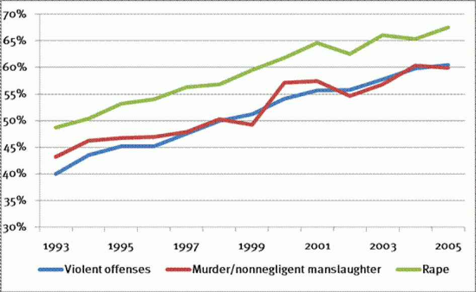 [187] A recent analysis of state recidivism found that four out of ten offenders returned to prison within three years of release either for committing new crimes or for violating the conditions governing their release. Pew Center on the States, “State of Recidivism: The Revolving Door of America’s Prisons” (Washington, DC: The Pew Charitable Trusts, April 2011).