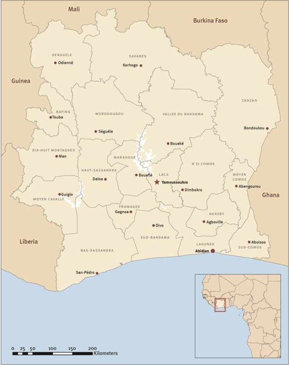 Based on a three week research mission to Côte d’Ivoire in late August and early September 2012, this report focuses primarily on the crackdown by security forces in the Abidjan neighborhood of Yopougon and in the town of Dabou, some 40 kilometers to the west of Abidjan. The majority of the abuses documented occurred at three military camps: the military police base in the Abidjan neighborhood of Adjamé; the former anti-riot brigade (known as the BAE, for its French acronym) base, now controlled by the military, in Yopougon neighborhood; and a military camp in Dabou.