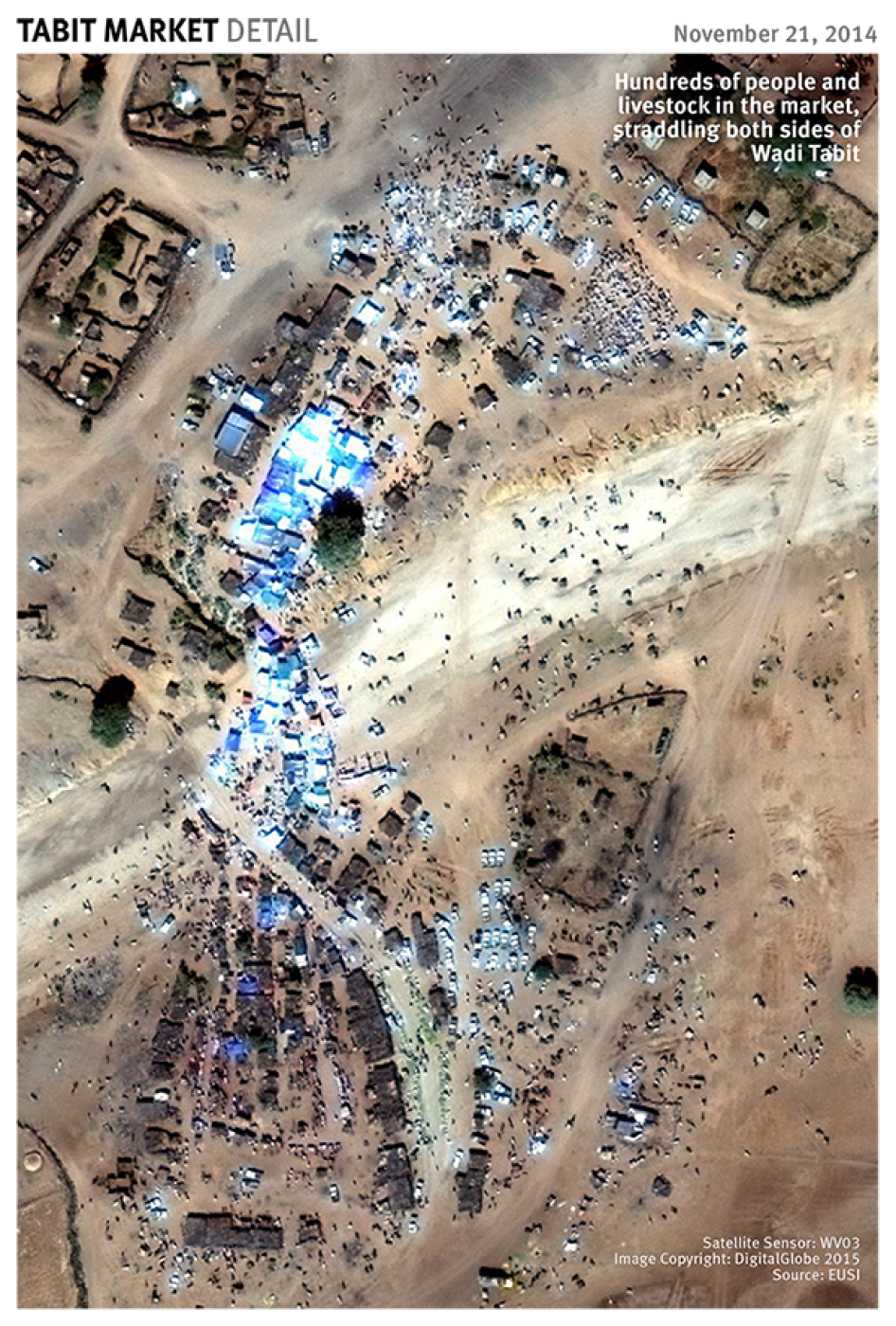 Sudanese government forces carried out three attacks against civilians in Tabit over a 36-hour period from Thursday, October 30 until Saturday, November 1, 2014. The first attack began at about 8 p.m. on October 30 and continued until very early the next morning. The second attack, on Friday, October 31, was from about 9 a.m. until noon. The third attack began at 8 p.m. on October 31 and continued until early in the morning of Saturday, November 1.